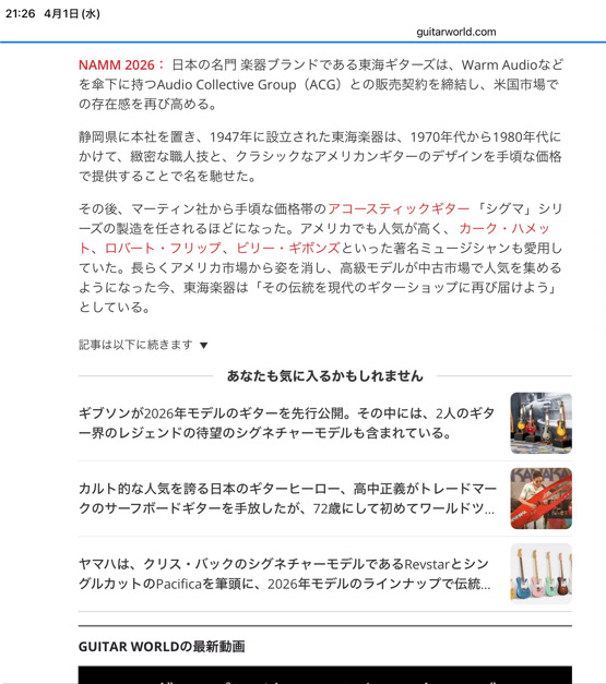 なんだそうです。英語分かりませんけれど。 https://www.guitarworld.com/music-industry/tokai-guitars-returns-to-the-us